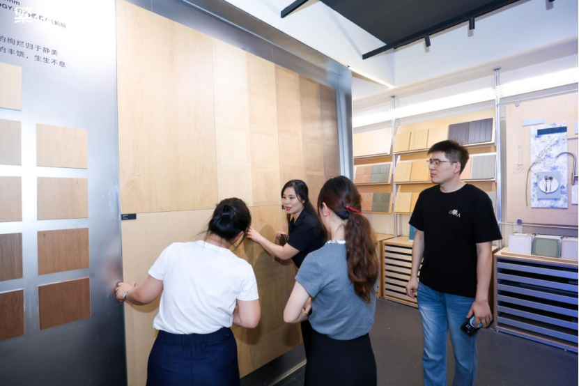 在伍总与徐老师的亲自导览下,来宾们深入展厅,直观感受艺术砖、石纹砖墙艺砖与进口砖如何在同一空间中和谐共生,创造出层次丰富、情感饱满的场景。