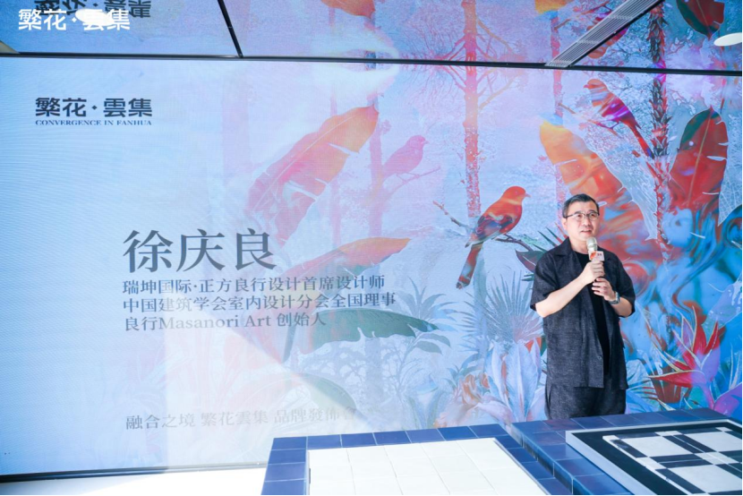 此外,瑞坤国际·正方良行设计首席设计师徐庆良先生也分享了展厅的设计理念,他表示本次为繁花·雲集打造这个融合概念馆对他是一个很大的挑战,他们想做的是从外到内打造这个场域,把整个空间系统结合在一起,通过设计将“融合”的理念转化为可感知的空间诗学。