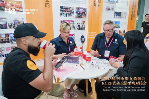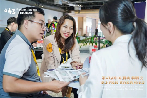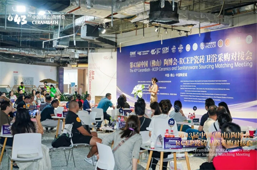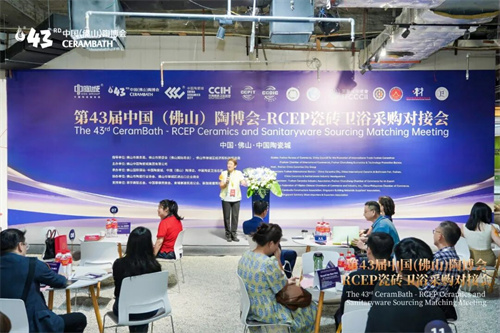 在“第43届中国(佛山)陶博会-RCEP瓷砖卫浴采购对接会”中,多位来自国内陶瓷卫浴品牌的领军人物及RCEP成员国的建筑材料采购商齐聚一堂,精准对接各方需求。